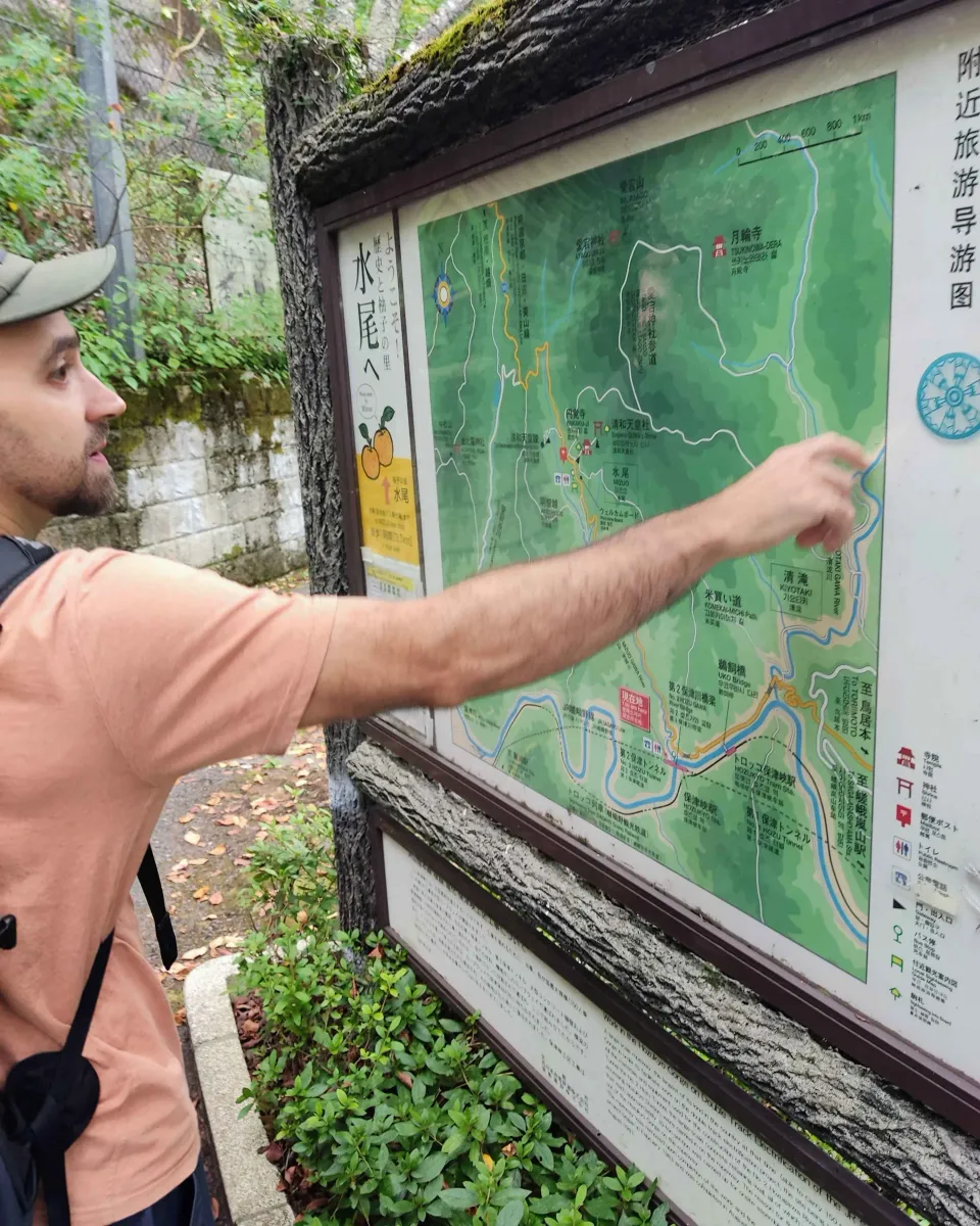 9:32 Meet at JR Hozukyo Station ~11:00 Pass the Atago Torii Gate in Kiyotaki Village ~12:30 Visit the Kuya Waterfall ~16:00 Visit Saimyo temple (optional, visit the main hall for 500yen) ~16:30 Return via Takao Bus Station to Kyoto Center